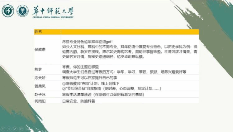 部门成员围绕身边人身边事,以提升师范生技能为宗旨开展选题讨论。最终拟定了与师范生学习及生活紧密相关的推文主题,例如“寒假你的主题在哪里”“寒假生活清单速递”“师范生防骗科普”等。