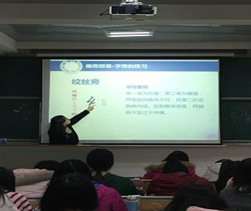 (当代师范生讯 尚佳 罗玉瑶)3月12日上午10:00,我校师范生专业技能训练指导团——钢笔字书写能力训练指导团走进外国语学院,分别在8215和3118教室针对外院2016级师范生开展第三次钢笔字书写训练指导。本次培训活动由教师教育学院主办,未来教育家联盟能力拓展部和外国语学院学科部共同承办,钢笔字书写能力训练指导团队的陈默晗和邱婷担任主讲。
