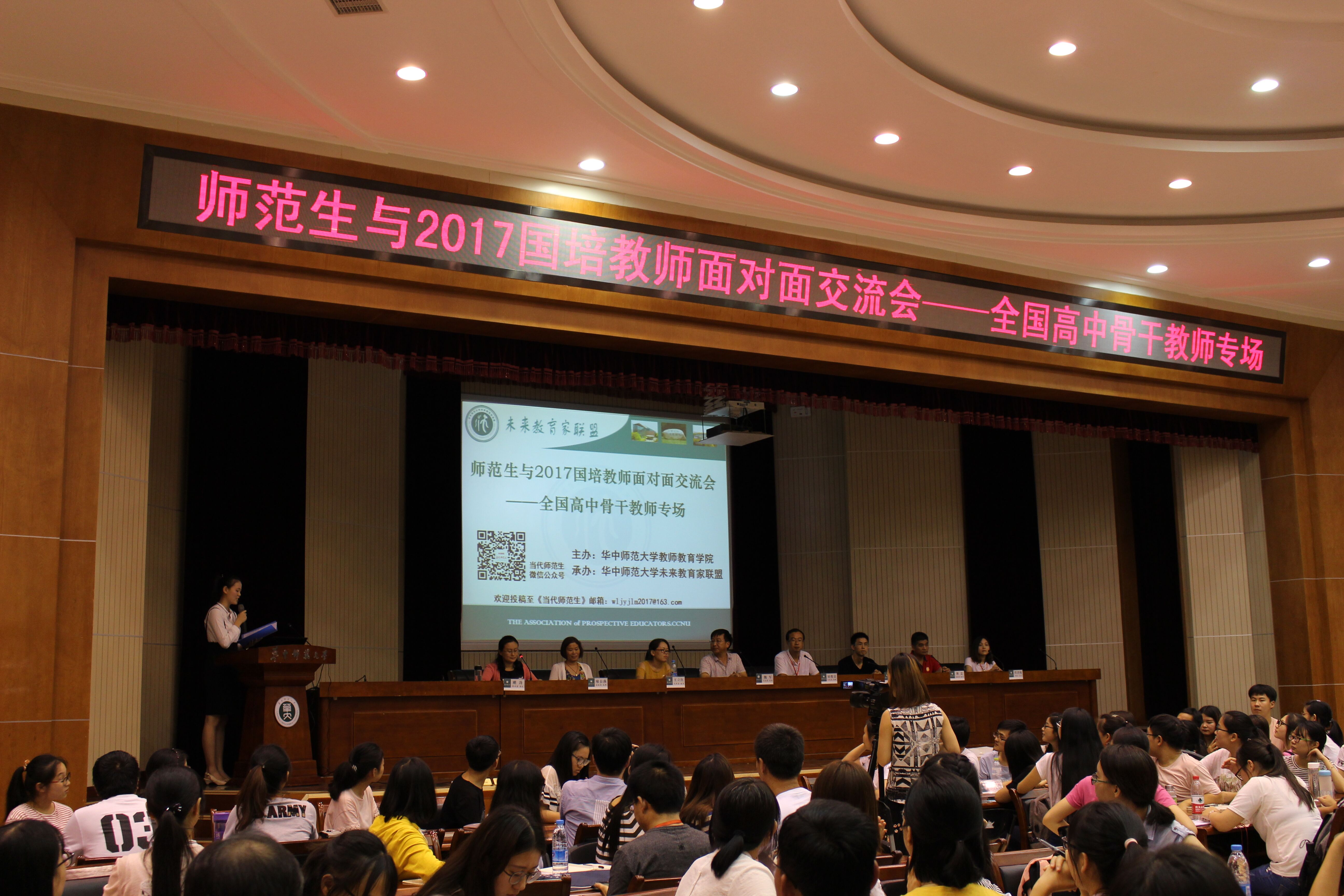 当代师范生讯(通讯员 陈彦如 李丽珠 许羽茜)9月11日18点30分,华中师范大学科学会堂师生群群围坐,“老师,课程导入如何设置?”“如何做好班主任工作?”这是我校师范生与教育部2017“国培计划”示范性项目全国高中综合实践活动教师面对面交流会的现场。在交流会正式开始之前,师范生们已迫不及待地与老师们交流起来。来自山东、天津、河北、湖南、重庆、福建、四川等地分别从事语文、数学、化学、英语、历史、地理、信息技术、美术等高中各类学科的28位骨干教师与我校近两百名师范生进行了面对面的热烈交流。