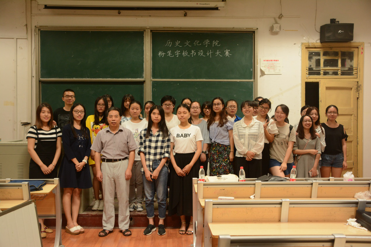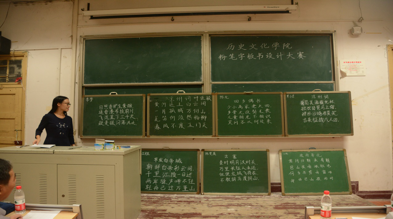 (通讯员于璐)9月16日晚,历史文化学院师范生技能大赛之粉笔字板书设计大赛在1201教室举行。本次比赛旨在以赛促练,推动师范生进行粉笔字书写训练,提高师范生粉笔字书写及板书设计能力。担任评委的是该院书法爱好者黄尚明老师和来自校师范生书写技能指导团的宋鋆涵、丘越和吴美静。比赛由师范生工作部马昱雯主持。