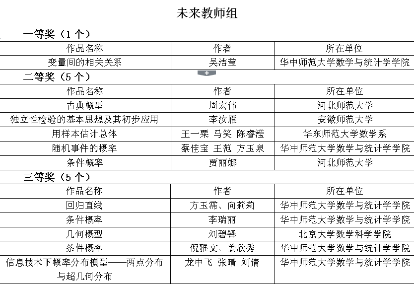 (当代师范生讯 通讯员 范明辉 邓清源 编辑 罗昕)近日,我校数学与统计学学院学生在“2017年(首届)高中统计与概率教学设计案例大赛—未来教师组”中获一等奖1项,二等奖1项,三等奖4项,占获奖总数的60%以上,整体表现居第一位。