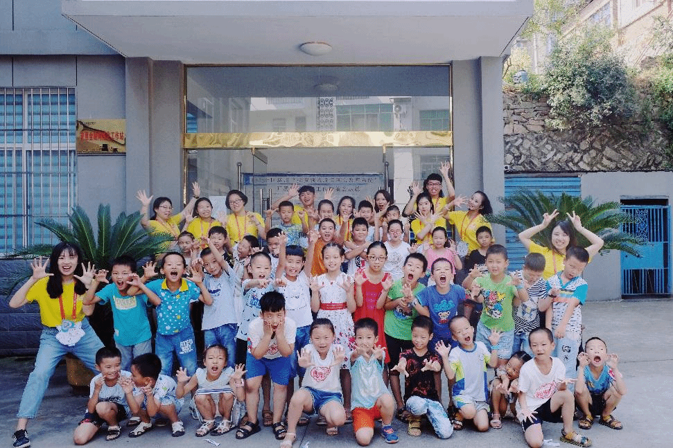(申老师支教团队与学生合影留念)