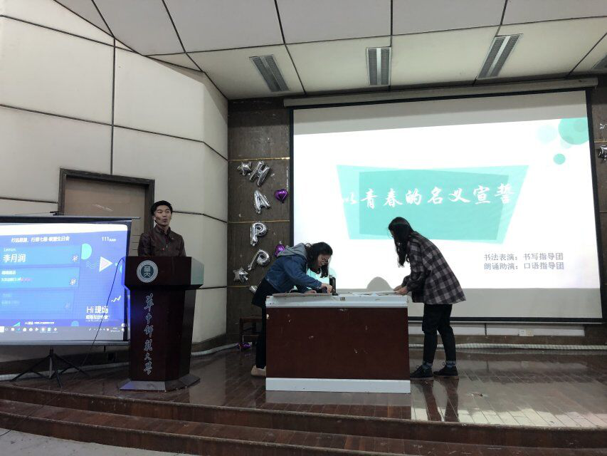 在新老成员对联盟的祝福中,生日会拉开了序幕。各部门的节目精彩纷呈,抽奖及游戏环节穿插其中。罗忻倾情演唱《梨花颂》,美妙的歌声回荡全场,使大家沉浸其中;训练部带来了相声《未来教育家联盟版“德云社”》、舞蹈《燃烧我的卡路里》以及手语操《明天,你好》,既展示了部门风采,又表达了对联盟的情感;活动部将杯子舞《稻香》和爵士舞《Good Time》串烧起来,从回忆童年的纯真到迸发青春的活力,证明了自己不负好时光;口语指导团独具创意的《甄嬛传·滴血认亲》配音秀引来声声喝彩,他们用自己的声音将电视剧里人物的性格展现得淋漓尽致;书写能力指导团邀请助演嘉宾口语指导团现场合作,在豪迈激情的朗诵声中,书写了“笔道成锋,锻塑师魂;字灵如鼎,授业重器”十六个字,赢得掌声如潮;秘书处以歌曲《同一首歌》送上了对联盟的真挚祝福,并引来了全场大合唱。