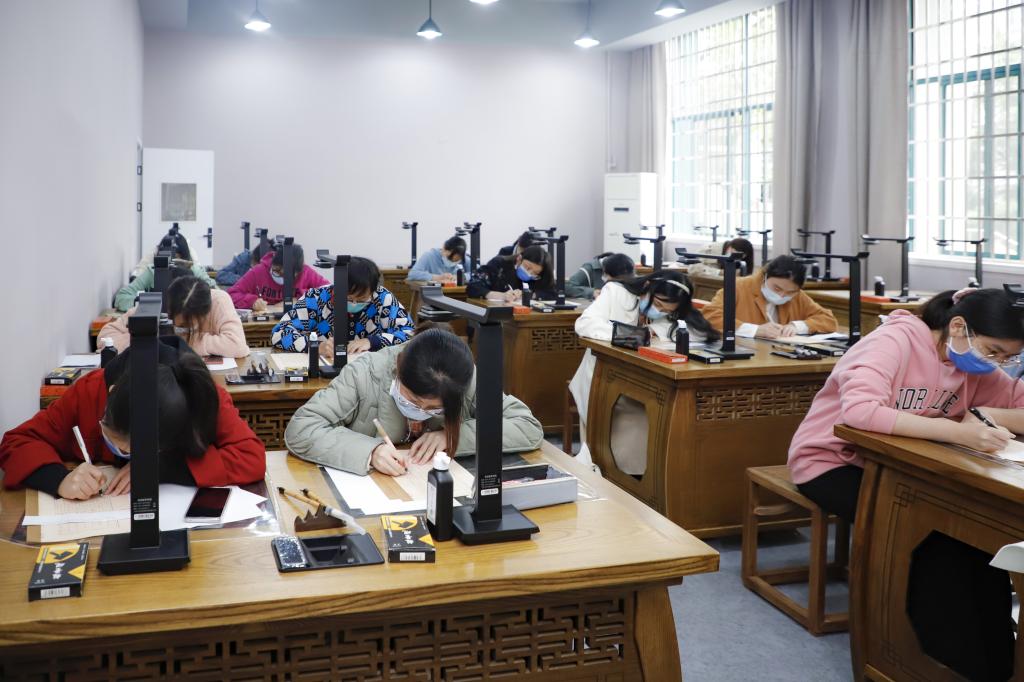 当代师范生讯(记者:朱嘉慧 王学琴)4月15日,“第十五届师范生专业技能比赛·书写技能大赛”决赛在教师教育学院一楼顺利举行。105名师范生参与本次决赛。华中师范大学国家语言文字推广基地负责人汪国胜,文学院教授曹海东、毛德胜,华中师大一附中教师、师范生书写训练指导老师马志祥、吴洪涛担任评委。经过激烈角逐和评委反复核定,乔丽瑜等三名选手获得粉笔字板书设计一等奖,田晨旭等五名选手获得钢笔字一等奖。