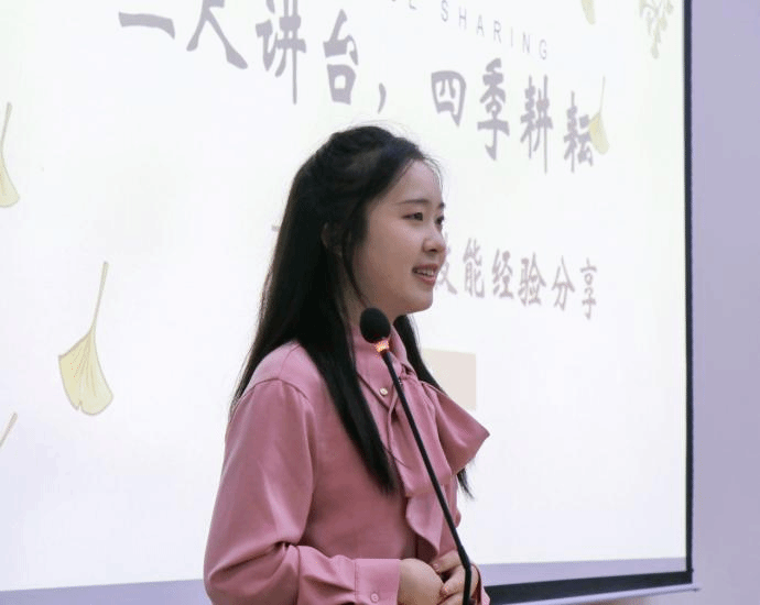 黄慧伶进行了主题为“为者常成,行者常至”的分享。简要自我介绍后,她详细讲解了部分师范生技能比赛并分享自己的参赛经验,如扬长避短,虚心请教,打牢基础等。她劝勉同学们以赛促练,调整好心态,即便遇到强有力的对手也不必自我怀疑。