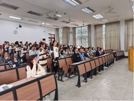 在“方言的魅力”环节,刘桢桢带领同学们观看幽默的动画视频,领略祖国各地方言的魅力,鼓励在场同学克服方言羞耻,敢于说出家乡方言。她强调学习普通话和传承方言文化同样重要。