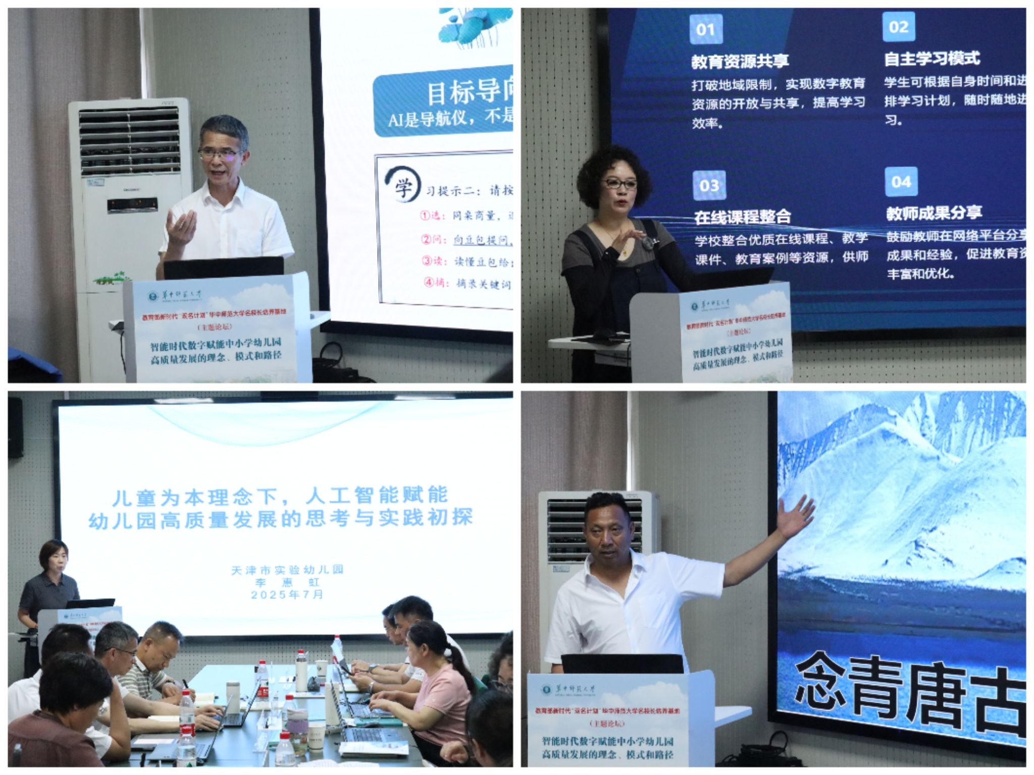 研修期间,为深入落实《教育部办公厅关于组织实施数字化赋能教师发展行动的通知》,提升名校长教育数字化领导力,举办了3场题为“智能时代数字赋能中小学幼儿园高质量发展的理念、模式和路径”的主题论坛,来自不同学段、不同地域的14位校园长先后分享实践经验。