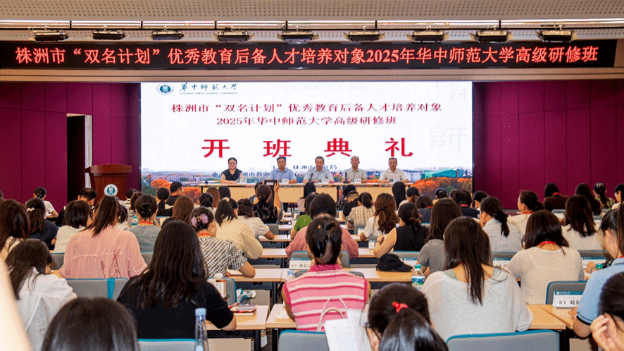 (通讯员:王筱瑨)9月18日,株洲市“双名计划”优秀教育后备人才培养对象2025年华中师范大学高级研修班开班典礼在我校举行。华中师范大学教师教育学院副院长吴军其、株洲市教师培训中心党委书记余祖斌、教育科科长江桂雄、工会主席匡锋、研修班班主任王筱瑨以及来自湖南省株洲市的100名一线骨干教师参加了典礼。