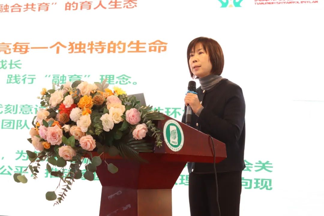 天津市实验幼儿园党支部书记、园长李惠虹,以《融育全人,培基致远:构建幼儿园高质量发展的园本样态》做主题报告。李园长指出,“全人”是“全面、和谐且富有个性的发展”,“培基致远”是价值追求与使命,幼儿园应该以高质量的教育为培养德智体美劳全面发展的社会主义建设者和接班人奠定坚实基础。