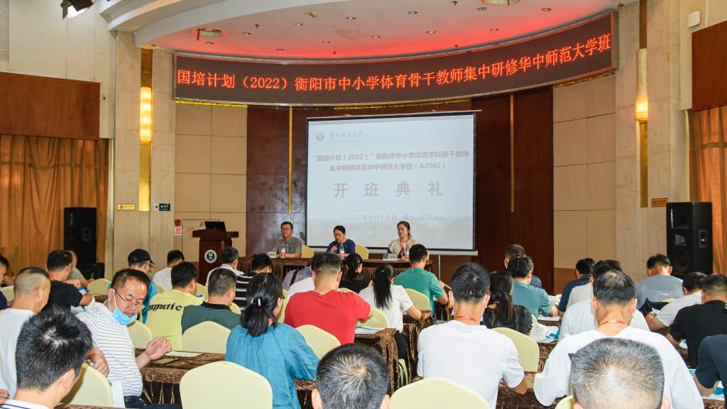 7月15日上午,湖南省“国培计划(2022)”衡阳市中小学体育学科骨干教师集中研修项目开班典礼在我校举行。华中师范大学教师教育学院院长何静、研修班班主任张继坡以及来自衡阳市的70名体育学科骨干教师参加了典礼。