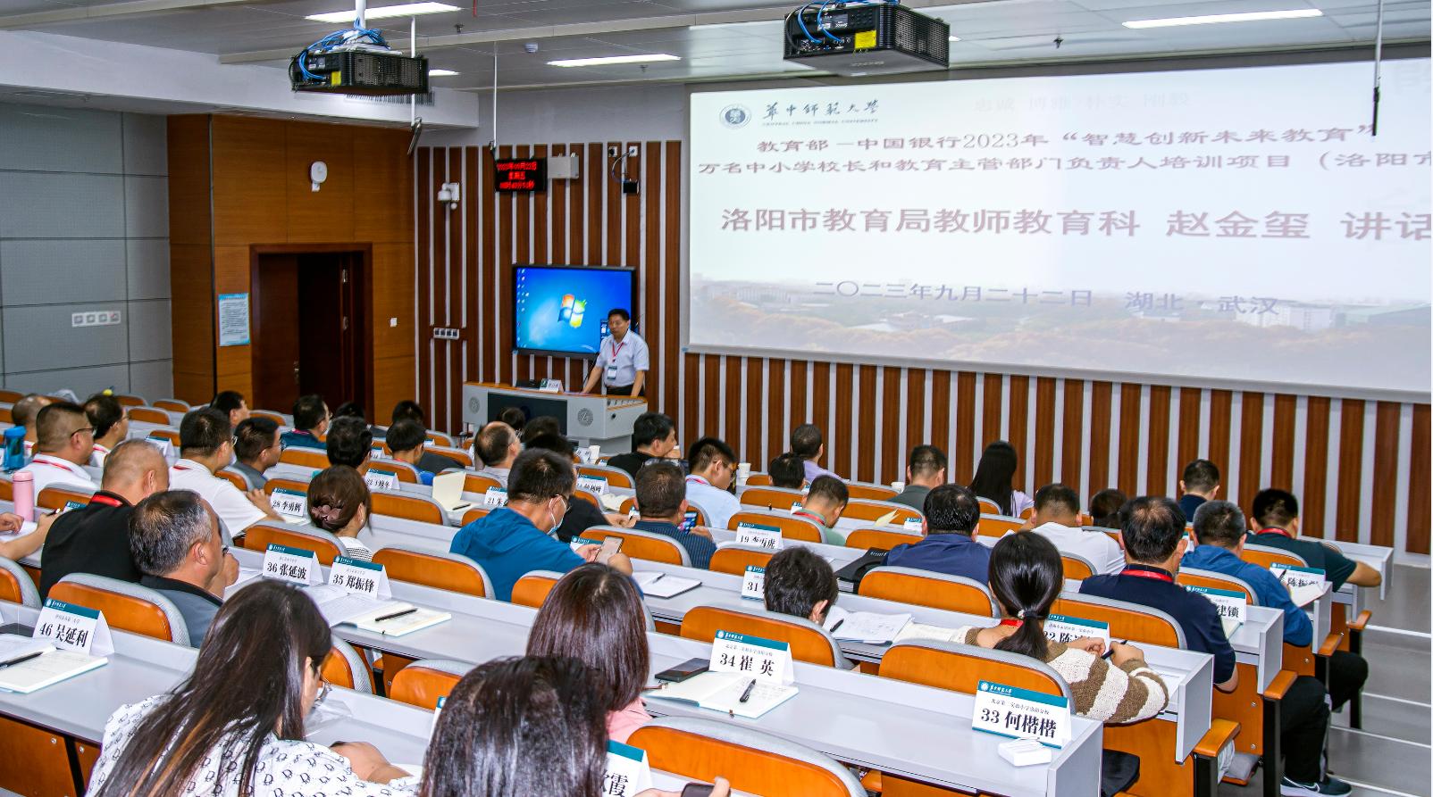 9月22日上午,教育部—中国银行2023年“智慧创新未来教育”万名中小学校长和教育主管部门负责人培训项目(洛阳市)开班典礼在我校南湖综合楼N207举行。华中师范大学教师教育学院副院长吴军其、洛阳市教育局教师教育科科长赵金玺、中国银行洛阳分行个人数字金融部副主任李雯静、研修班班主任张继坡、杨颖,以及来自洛阳市的50名学员参加了开班典礼。典礼由杨颖主持。