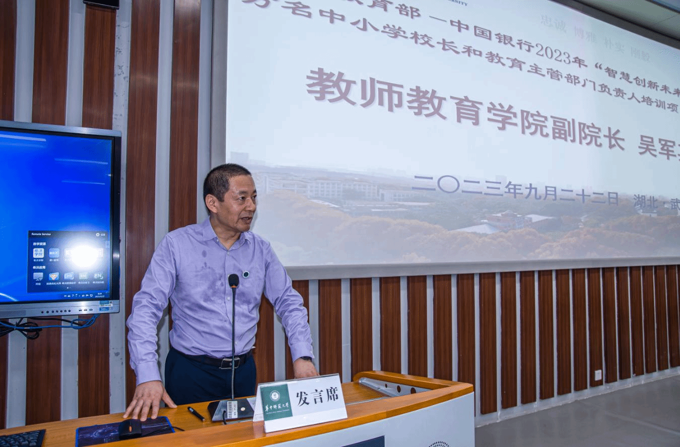 吴军其强调,根据《中国教育现代化2035》《教育信息化2.0行动计划》总体部署,为深入推进巩固拓展教育脱贫攻坚成果同乡村振兴有效衔接,教育部和中国银行联合启动了“智慧创新未来教育”万名中小学校长和教育主管部门负责人培训项目,这是一次推动新时代学校数字化转型的专项培训,意义重大。希望全体学员,提高站位、转变角色、潜心研修,紧紧围绕“校长管理创新:数字化解决方案”主题,聚焦智慧校园建设中的痛难点问题,通过培训不断提升学校数字化管理效能。