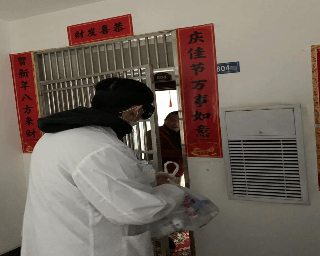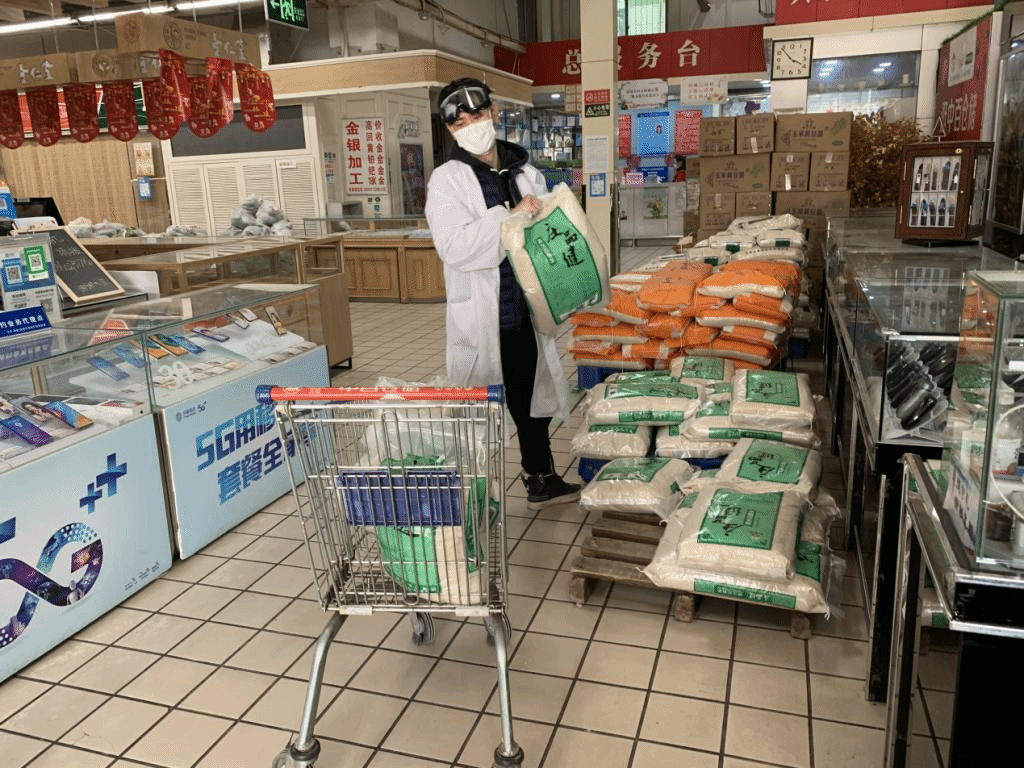 最近在社区帮忙联系食品捐赠及采购等工作,为社区采购和运输米面粮油,为孤寡老人上门送物资。
