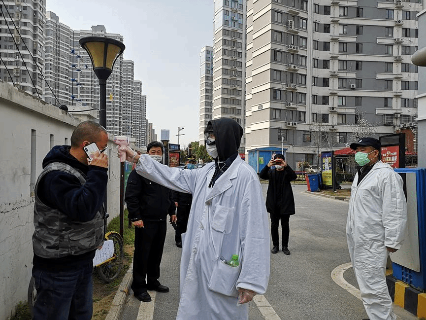 对小区人员测体温