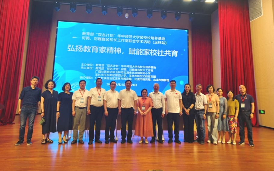 玉林站活动以“弘扬教育家精神,赋能家校社共育”为主题,教育部“双名计划”何薇名校长工作室和刘巍巍名校长工作室联动。活动期间,参会人员深入考察了北流镇城南小学并在该校进行一场读书分享会和一场“学术+工作经验”交流活动;考察了新圩镇河村美丽乡村建设情况,参与见证了“教育部新时代中小学名师名校长培养计划(2022—2025)”何薇名校长工作室研修基地和“童享阳光·广西偏乡家庭教育援助行动计划示范基地”同时揭牌成立;参观了北流市文化馆、北流市爱国主义教育基地俞家舍、北流市东坡公园、玉林新世纪教育城等;华中师范大学教师教育发展研究中心副主任、特级教师沈爱华为北流市校长和教师代表作了题为“弘扬中国特有的教育家精神,推进家校社协同育人”的主题讲座。通过一系列活动,实地感受教育部“双名计划”何薇名校长工作室的工作成效及其努力推进家校社协同育人的生动场景、经验做法,进一步明确了努力方向。