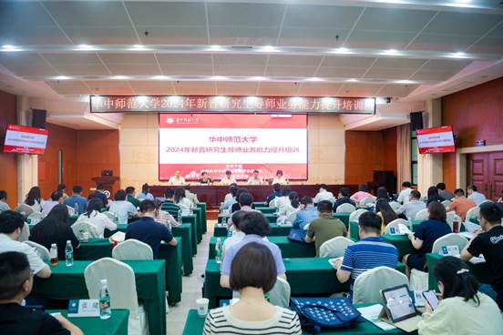 6月29日上午,我校2024年新晋研究生导师业务能力提升培训班开班仪式在管理教育综合楼103会议厅举行。来自全校130多名新晋研究生导师参加此次培训。华中师范大学校长彭双阶、研究生院院长雷万鹏、副院长曾艳梅以及教师教育学院院长黎俊玲、副院长吴其军出席了开班典礼。