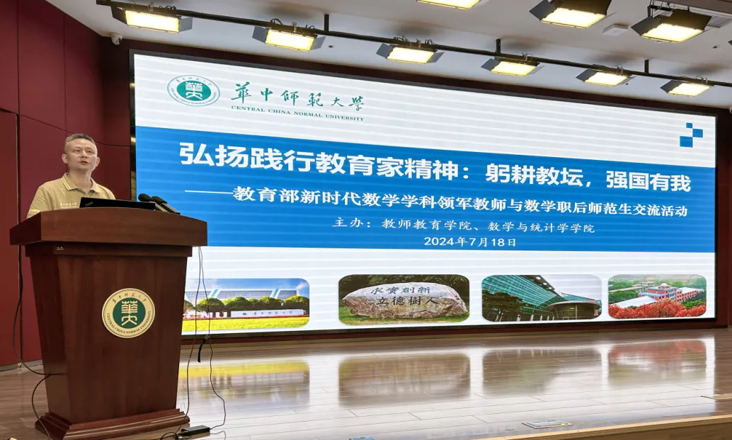 为进一步弘扬和践行教育家精神,推进我校师范生职前职后融通一体化培养,2024年7月18日,由教师教育学院、数学与统计学学院联合主办的教育部新时代学科领军教师与数学公费师范生教育硕士(青年教师)的分享交流活动在新文科科研楼成功举办。