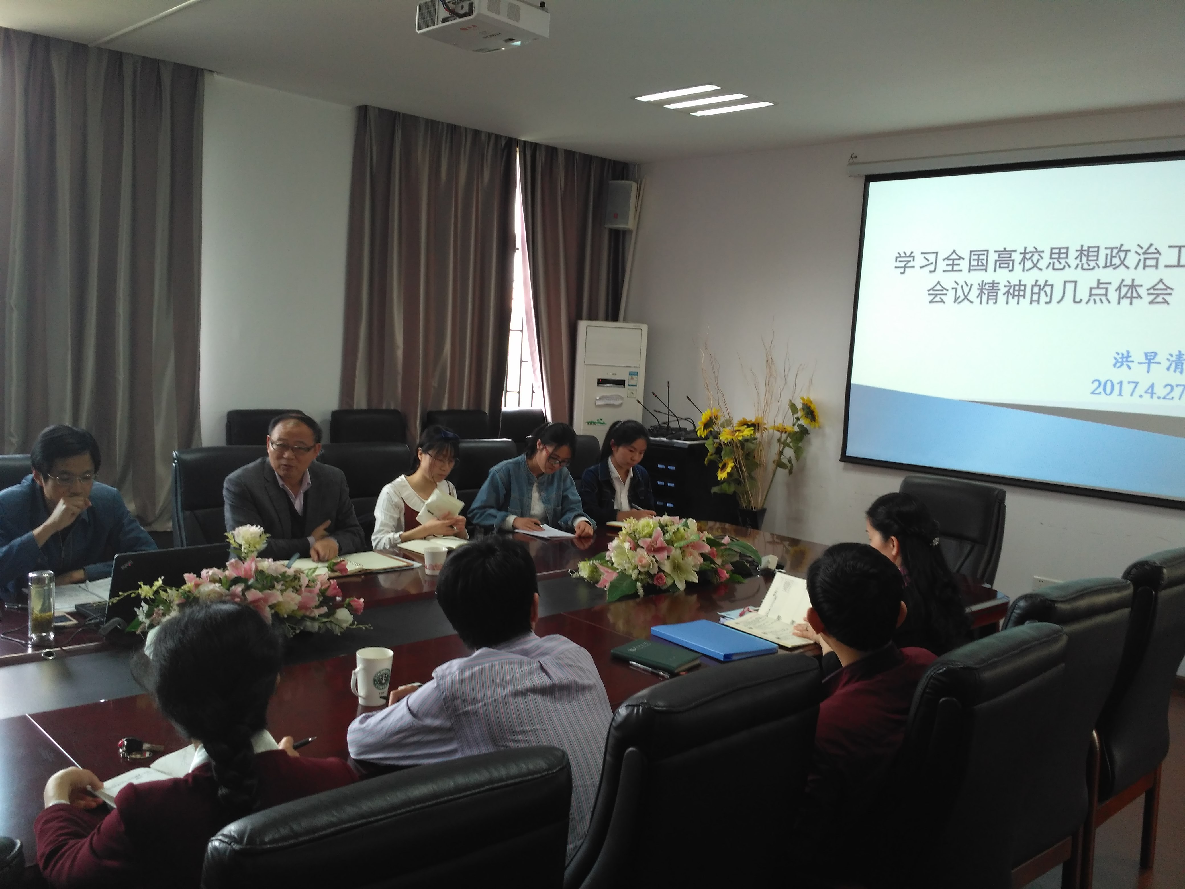 4月27日下午,教师教育学院在B43会议室举行第二次教职工政治理论学习,全体教职工及研究生参加此次学习,院长洪早清做专题报告。