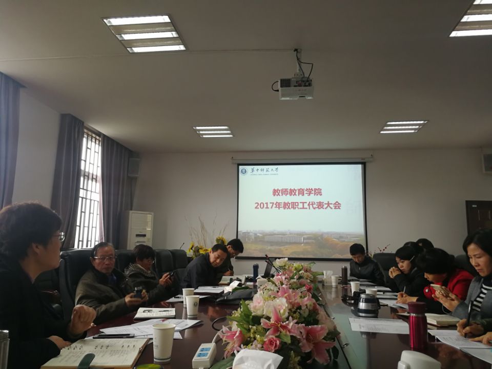 11月28日上午,学院在B403会议室召开2017年教职工代表大会,学院全体教职工及离退休同志代表参加,会议由学院工会主席曹艳丽主持。