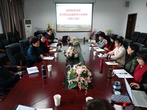 12月18日下午,教师教育学院举行全体教职工政治理论学习,就全国教育大会精神落实进行分专题研讨,学习由院长何静主持。
