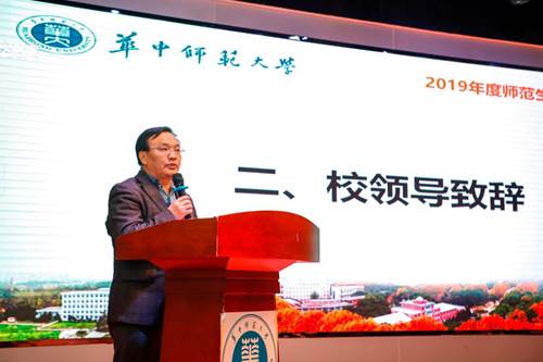(通讯员:董彬彬 摄影:俞啸钰)12月13日,华中师范大学“第十二届师范生专业技能大赛”“第十届最佳师范生集体、师范生活动积极分子”“2019年度师范生训测工作先进单位”颁奖典礼在大学生活动中心举办。经过学院选拔赛、学校决赛的层层选拔,105个参赛选手和团队获得“第十二届师范生专业技能大赛”相应奖项,8个集体荣获“第十届最佳师范生集体”称号,147名师范生获得“第十届师范生活动积极分子”称号,9个学院荣获“2018年度师范生训测工作先进单位”称号。