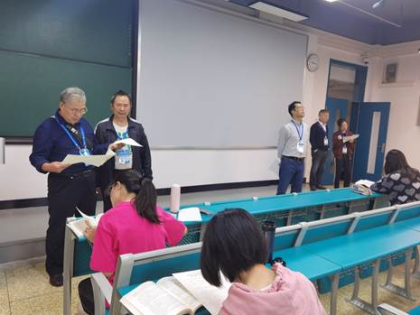 2023年11月4日,我校教师教育必修课《班主任与班级管理》第一次结课考试圆满完成。此次考试在我校八号教学楼进行,共有11个课堂、756名修习该课程的2021级师范生参加,这是对他们顺利完成课程学习所获相关知识和能力的检测。本科生院副院长卢新元、教师教育学院副院长薛平军、本科生院负责教学调度的李思文老师以及学校教学督导组组长骆启桂教授和督导员刘德立教授一行赴现场巡考,学校“班主任与班级管理”教研室主任周东明教授、副主任汪丽梅副教授参加巡考。各位领导和督导员对考试的组织工作和试卷出题质量给予高度评价。