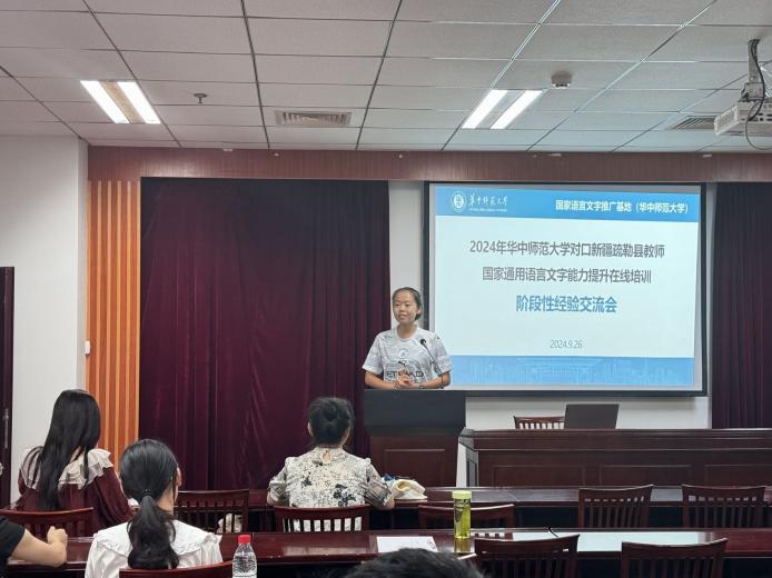 当代师范生讯(通讯员:黄纪潘)9月27日下午,我校对口新疆疏勒县“国家通用语言文字能力提升在线培训”阶段性经验交流会在语言研究所报告厅举行。校语委办申定羽、国家语言文字推广基地联络人王莹莹及全体志愿教员参加会议。