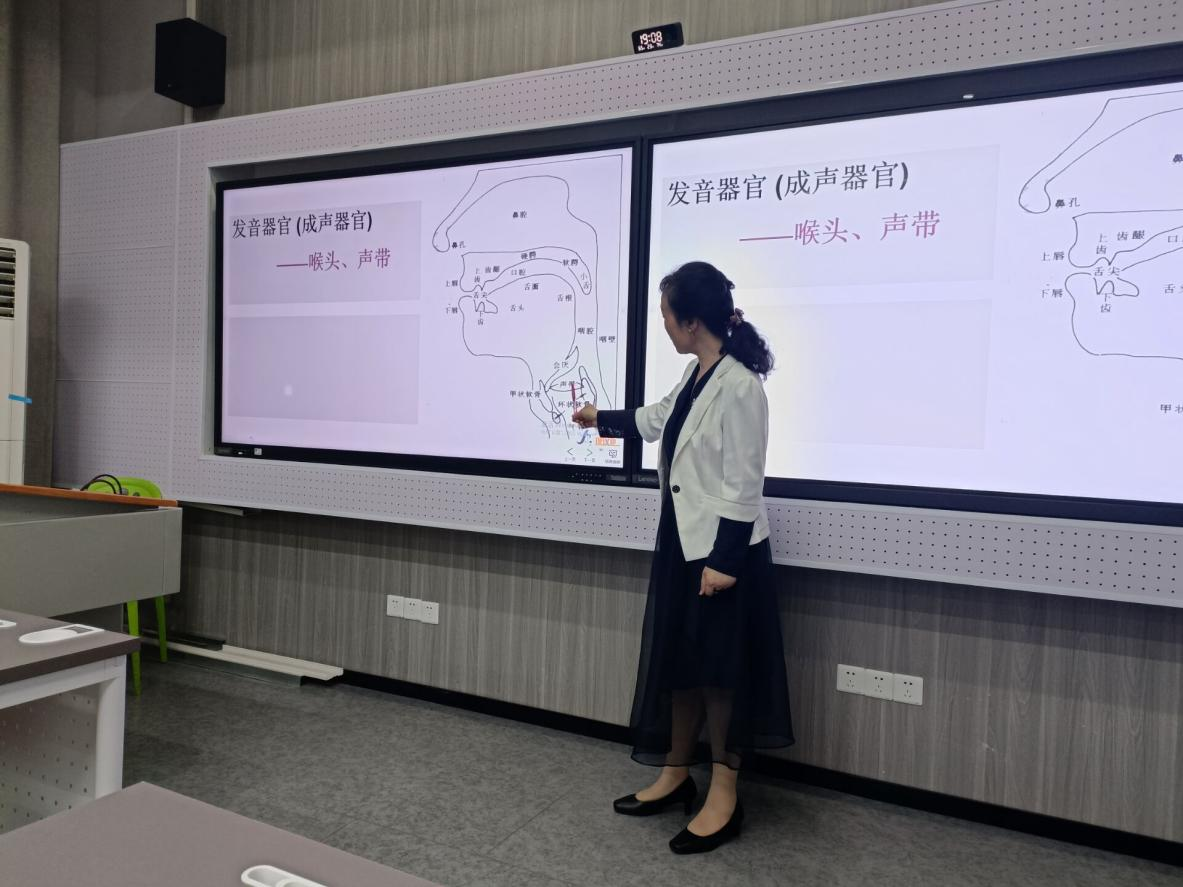 兰霞分享了自己从兴趣出发钻研普通话的语音语调,从浓浓方言味到标准普通话的学习成长历程,用实际行动诠释出努力的意义。她强调,作为未来教师,要具有外交家的口才、演讲者的风范、主持人的灵活,还要学会掌握最省力的发音方式,因此,学会科学发声与保护嗓音就尤为重要。