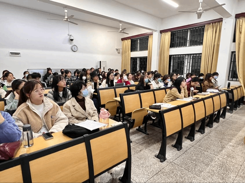 周舒林以同学们的不同口音为切入点,介绍了方言的历史发展和地区分类,播放了三段有关方言的视频,声图结合,为同学们生动形象地展示了中国各地方言的丰富多样和独特魅力。她幽默诙谐的语言,令现场爆笑不断,学生兴致高涨。