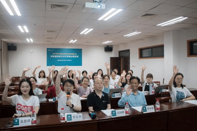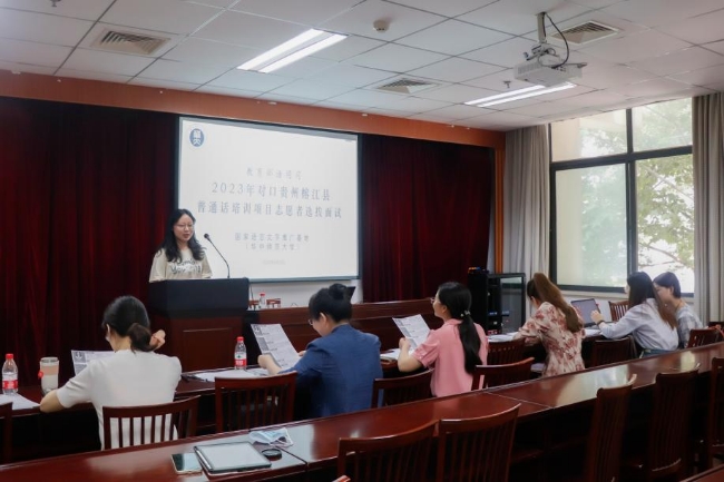 前期培训与指导阶段,基地与教师教育学院联合开展志愿者面试遴选,对通过面试的21名语言学背景深厚、普通话二级甲等以上的志愿者进行训前指导与业务培训,结合贵州榕江县100名少数民族农村教师的语言特点和培训需求,制定切实可行的课程安排与教学计划。