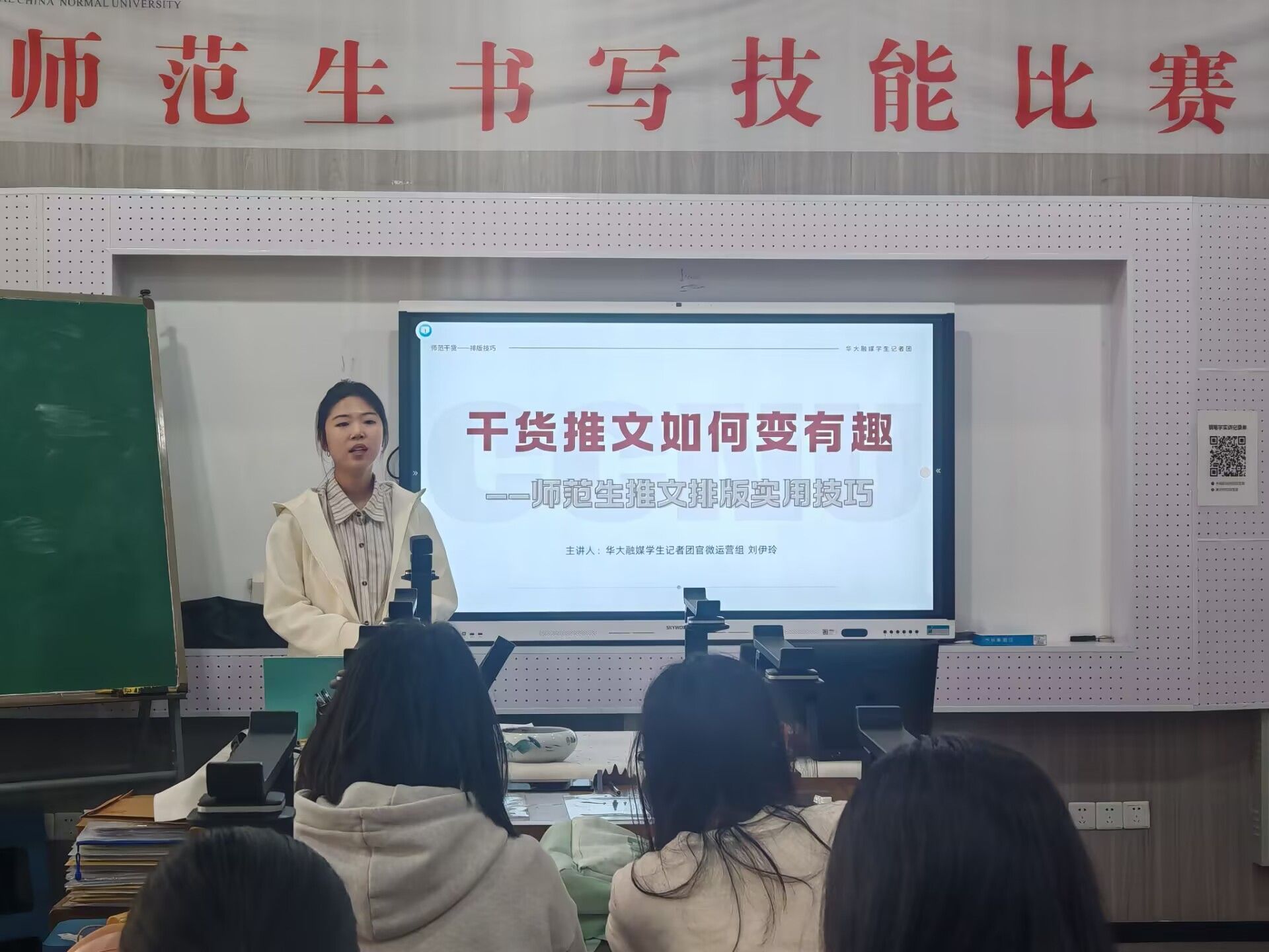 刘伊玲围绕推文结构设计展开培训。她指出,干货类推文排版必须逻辑清晰,遵循倒金字塔原则,将最重要的信息前置,次要内容与细节补充在后,让读者能快速抓住重点、高效获取信息。她以“师范生第一堂课怎么上”的话题为例,详细拆解了推文的完整写作框架,建议使用直白具体的小标题划分内容,避免大段文字堆砌,为读者营造舒适的阅读节奏,增强推文的可读性,提升整体阅读体验。