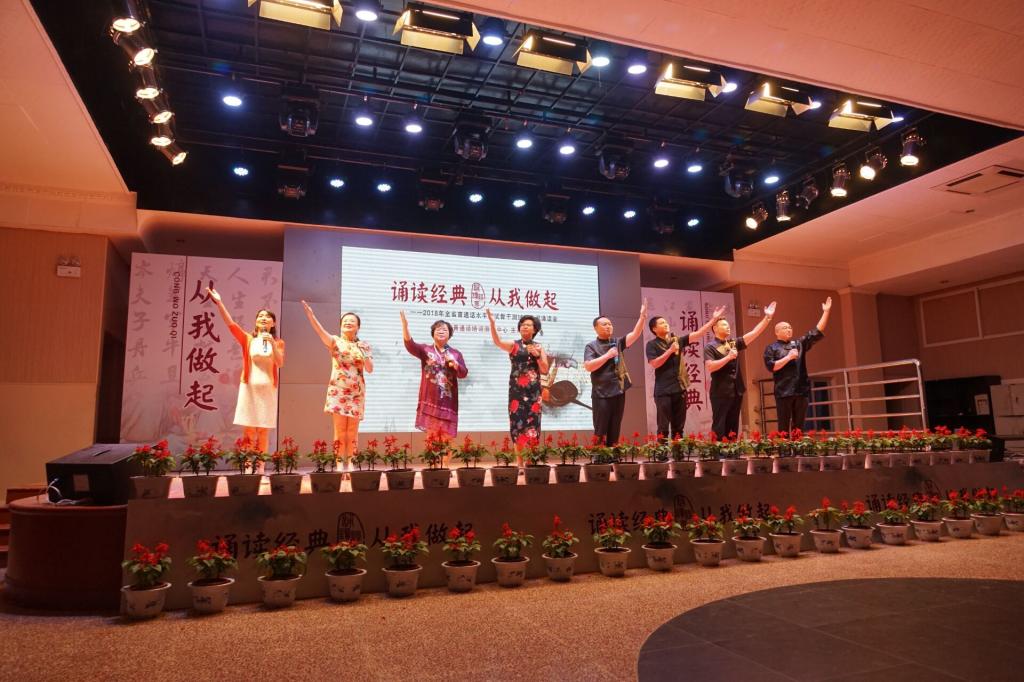 华大在线讯(记者 华轩)为贯彻落实习近平总书记关于语言文字工作的重要指示精神和《国家语言文字事业“十三五”发展规划》,切实加强语言文字工作骨干队伍建设,充分发挥骨干测试员在弘扬中华优秀传统文化方面的示范带头作用,5月20日,湖北省普通话培训测试中心在华中师范大学举办全省骨干测试员业务培训暨“中华经典诵读推广和研究”工作培训班。教育部语言文字应用研究所专家为培训班做了专题讲座。培训期间,举办了“诵读经典 从我做起”诗词朗诵会。朗诵会上,百余名骨干测试员同场共诵传统经典诗词,场面蔚为壮观。教育部语言文字应用研究所副所长刘朋建、普通话培训测试处处长韩玉华、省教育厅语委办主任曾彦、华中师范大学教师教育学院院长洪早清等观看了演出。